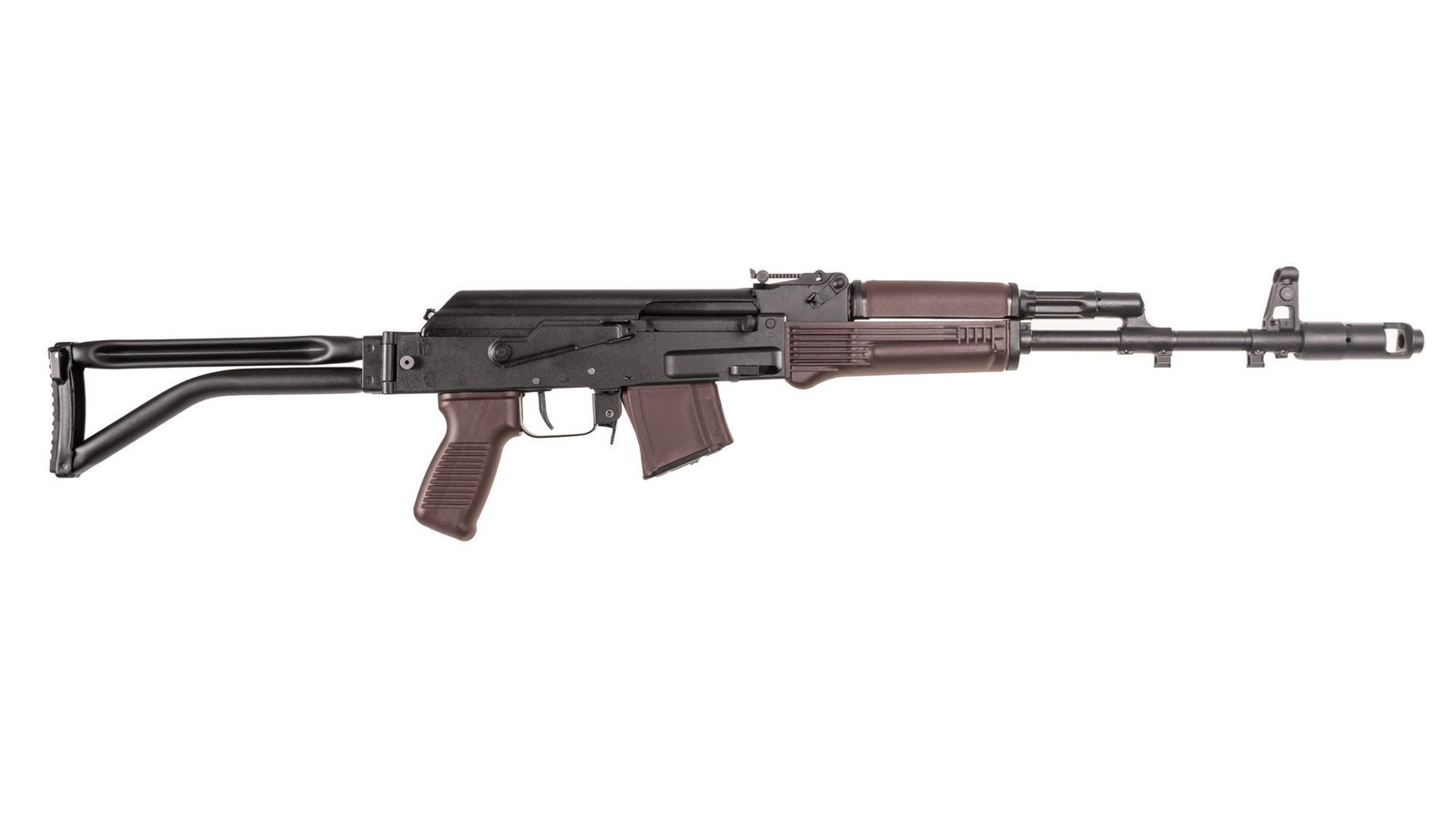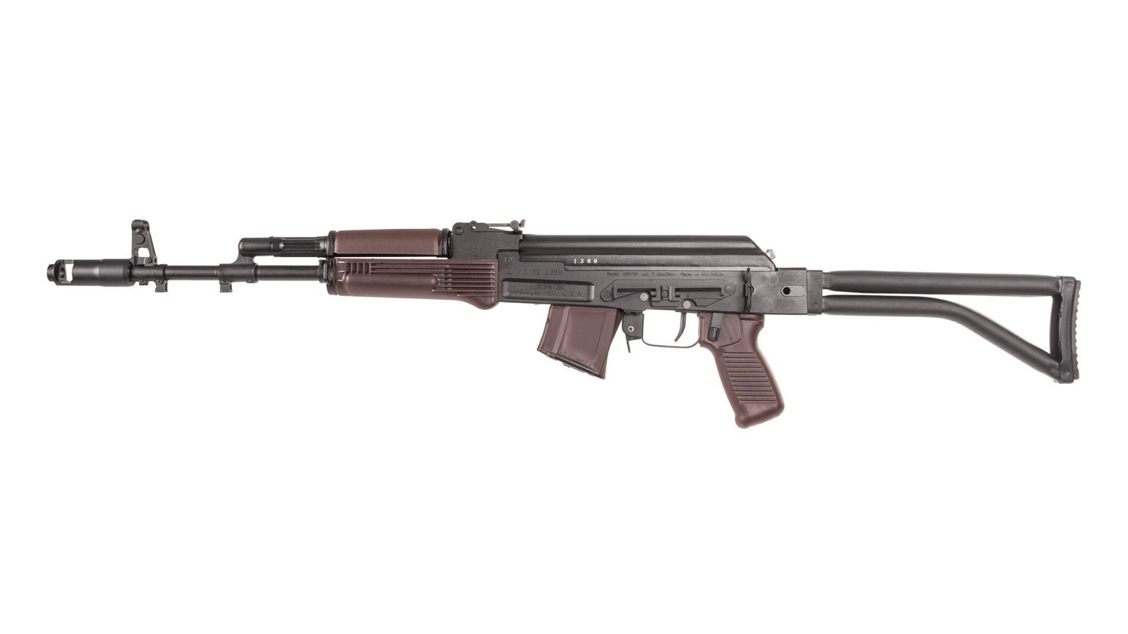 SAM7SF-84EPM | SAM7SF Plum furniture model 7.62x39mm caliber rifle plum 10rd magazine milled and forged receiver enhanced double stage fire control group chrome lined hammer forged barrel 24×1.5mm muzzle right hand threads muzzle brake bayonet and accessory lugs right-side folding tubular buttstock plum polymer pistol grip and handguards stainless steel heat shield ambidextrous safety lever scope rail sectional cleaning rod one plum 10-round magazine sling oil bottle and cleaning kit.