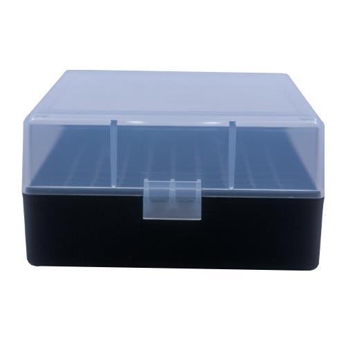 All Berry?s Ammo Boxes are made from high impact polypropylene for increased strength against cracking chipping warping expansion or contraction. Model #005 100 round boxes feature their stronger flip-top design allowing the securing of ammo storage with easy one-handed operation. Along with a translucent lid they now come with a black base for increased strength and a clean look. They are stackable they carry a lifetime warranty and they are made in the USA.