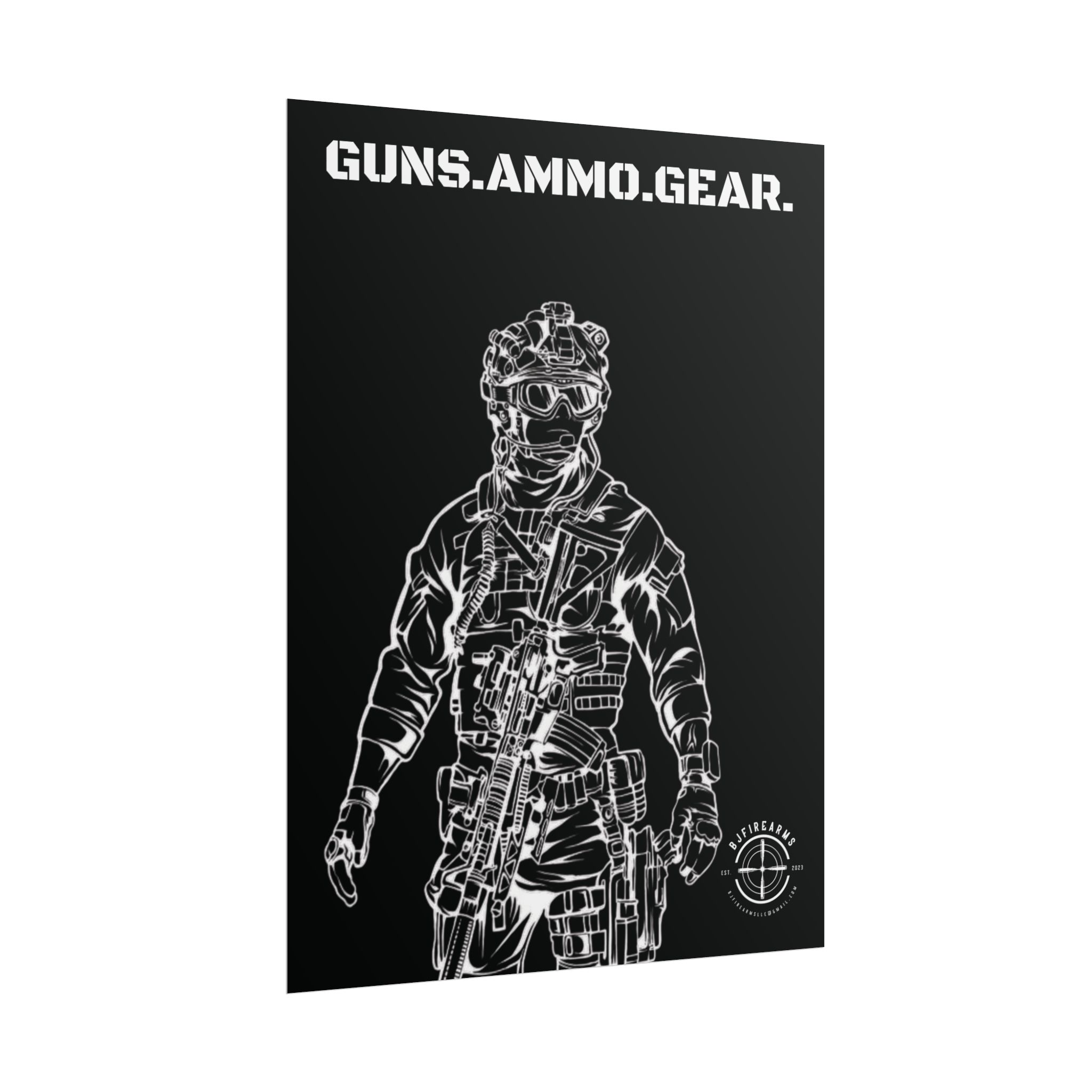 Rolled Poster — “GUNS.AMMO.GEAR.” Tactical Soldier Wall Art