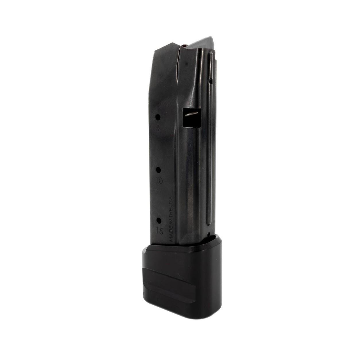 The Shield Arms S15 Gen 2 PowerCron 15 round 9mm magazine with an anodized Shield Arms +5 magazine extension pre-installed. Their unique easy access floor plate design allows you to quickly access the spring and follower without having to remove the extension from the magazine body. Comes with a 100% lifetime warranty and the Shield Arms Spring for LIfe Guarantee.